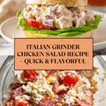 A flavorful Italian grinder chicken salad combining shredded rotisserie chicken with classic Italian deli meats, cheeses, and a tangy, herby red wine vinegar dressing. Perfect as a hearty salad, sandwich filling, or dip, this salad offers a versatile and savory meal option that can be prepared quickly and stored for up to four days.