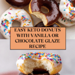 Keywords: keto donuts, low carb donuts, almond flour donuts, keto dessert, sugar-free glaze, vanilla glaze, chocolate glaze