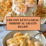 This Keto Garlic Shrimp Au Gratin is a rich and creamy dish perfect for low-carb lovers. Featuring tender shrimp baked in a flavorful garlic cream sauce topped with a crunchy pork rind crust, it’s an indulgent yet healthy meal option.