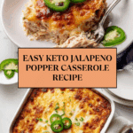 This Keto Jalapeno Popper Casserole is a creamy, spicy, and satisfying dish perfect for low-carb diets. Combining tender chicken with rich cream cheese and sharp cheddar, it’s a flavorful meal that’s easy to prepare and bake.