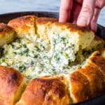 - Step 7: Spoon the spinach artichoke dip into the center of the ring, filling the space completely.