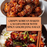 Keywords: Korean baked cauliflower, vegan appetizer, Korean spicy sauce, crispy cauliflower, plant-based snack, baked cauliflower recipe, gochujang cauliflower