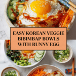 Korean Veggie Bibimbap Bowls are a colorful, nutritious meal that’s full of vibrant flavors and textures. This dish combines warm rice, fresh vegetables, a runny fried egg, and spicy gochujang sauce for a satisfying bowl that’s easy to assemble and delicious to eat.
