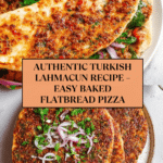 Keywords: lahmacun, Turkish pizza, baked flatbread, ground beef recipe, Turkish cuisine, homemade dough, savory flatbread, Middle Eastern food