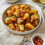 Lebanese Spicy Potatoes, known as Batata Harra, are deliciously crispy and flavorful air-fried or oven-baked potatoes tossed in a fragrant blend of spices and a vibrant cilantro garlic sauce. This dish offers a perfect balance of heat and freshness, making it an ideal side or appetizer for Mediterranean-inspired meals.