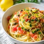 This refreshing Lemon Capellini Salad features delicate angel hair pasta tossed in a zesty lemon dressing with juicy tomatoes, briny capers, and fresh parsley. Perfect as a light lunch or side dish, it combines bright citrus flavors with simple, wholesome ingredients for an easy, crowd-pleasing meal.