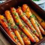 - Garnish and Serve: Remove the carrots from the oven and transfer them to a serving dish. Garnish with chopped parsley, crumbled cheese, or toasted nuts for extra flavor and texture. Serve warm and enjoy!