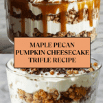 This Maple Pecan & Pumpkin Cheesecake Trifle combines warm autumn flavors in a delightful layered dessert. With spiced pumpkin cake, creamy maple pecan filling, and crunchy candied pecans, it’s perfect for gatherings or a cozy night in.