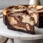 This marbled cheesecake combines the rich, creamy texture of classic cheesecake with a luscious swirl of chocolate. A crunchy Oreo crust adds the perfect base, making it a crowd-pleasing dessert for any occasion.