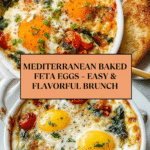 Mediterranean Baked Feta Eggs combine creamy feta, juicy cherry tomatoes, and perfectly baked eggs for a flavorful and satisfying meal. This simple dish is perfect for brunch or a light dinner, offering a delightful mix of savory and tangy tastes.