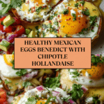 Enjoy a vibrant twist on a classic brunch favorite with Mexican Eggs Benedict featuring roasted sweet potato rounds as the base, topped with savory Mexican-style chorizo, creamy avocado, perfectly poached eggs, and a smoky chipotle hollandaise sauce. This recipe delivers bold flavors with a healthy approach, ideal for a flavorful and nutritious brunch.
