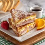 Keywords: Monte Cristo sandwich, grilled cheese, ham and cheese sandwich, pan-fried sandwich, savory sandwich, breakfast sandwich