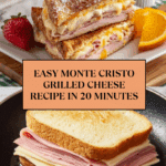 The Monte Cristo Style Grilled Cheese Sandwich is a delicious twist on a classic favorite. Combining savory ham and Swiss cheese with a lightly battered exterior, it’s a perfect balance of rich flavors and textures. Enjoy this warm, satisfying sandwich for a comforting meal any time of day.