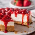 Keywords: no bake cheesecake, strawberry cheesecake, no bake dessert, easy cheesecake, vanilla wafer crust, creamy cheesecake, fresh strawberry topping
