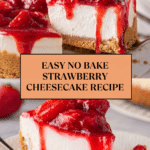This no bake strawberry cheesecake is a refreshing and creamy dessert perfect for warm days or any time you want a simple yet impressive sweet treat. It features a crunchy vanilla wafer crust, a smooth cream cheese filling, and a luscious homemade strawberry topping.