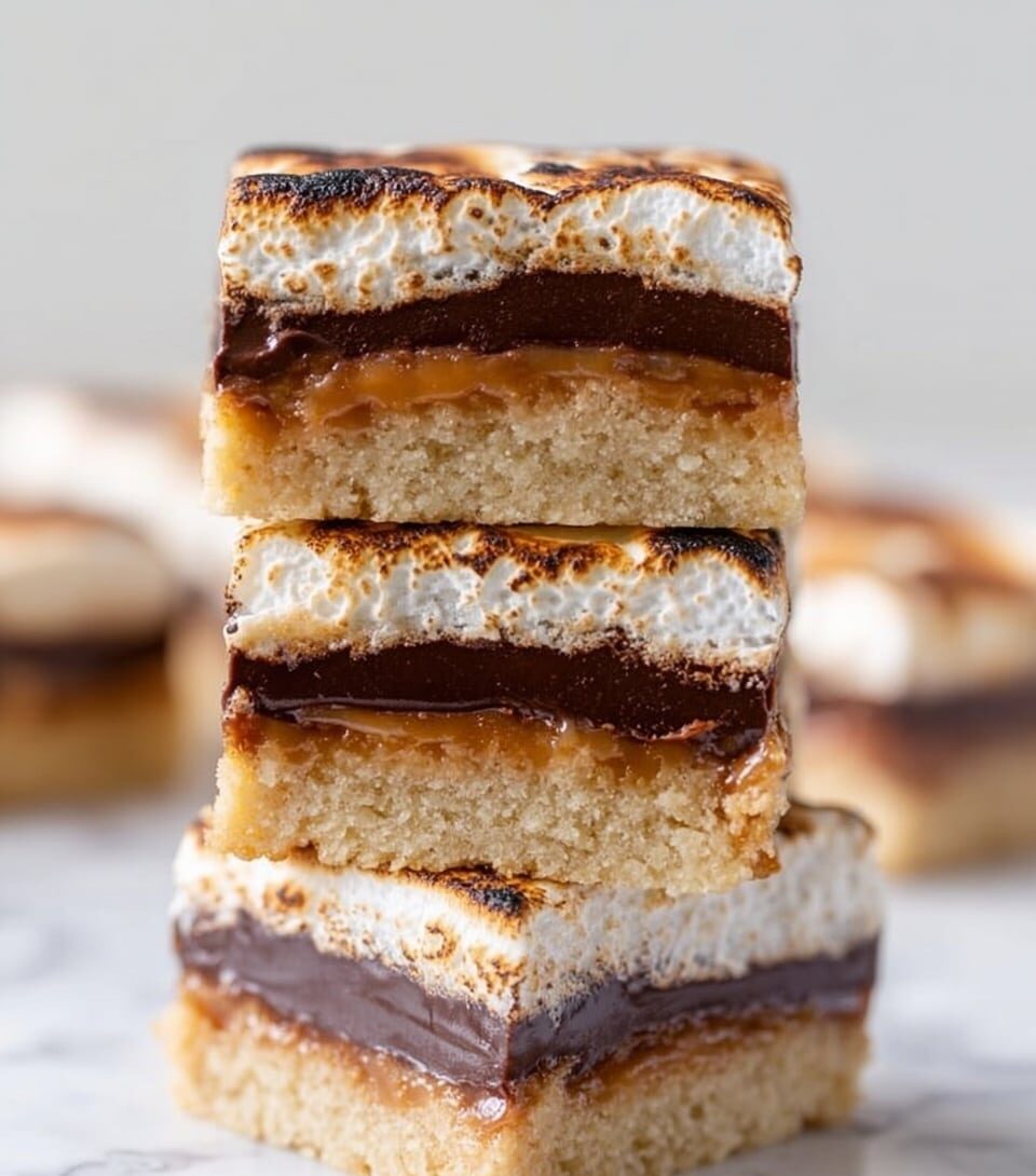 Store the s’mores bars in an airtight container at room temperature for up to 3 days. For longer storage, keep them refrigerated for up to a week. Allow refrigerated bars to come to room temperature before serving for the best texture. Avoid freezing as this may affect the marshmallow layer’s texture.