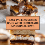 Keywords: Paleo s’mores, paleo dessert bars, gluten-free s’mores, homemade marshmallows, almond flour dessert