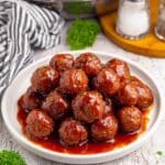 Keywords: Peach BBQ Meatballs, BBQ meatballs, quick appetizer, party snacks, sweet and tangy meatballs