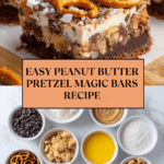 These Peanut Butter Pretzel Magic Bars combine salty pretzels, creamy peanut butter, and an indulgent mix of chocolate and butterscotch chips, all layered and baked to golden perfection. Perfect for a sweet and salty treat, these bars feature a crunchy pretzel crust topped with a rich peanut butter and chocolate layer, finished with a luscious topping of sweetened condensed milk, coconut, and chips, creating a delightful texture and flavor contrast.