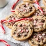 Keywords: peppermint chocolate chip cookies, holiday cookies, Christmas cookies, peppermint cookies, chocolate chip cookies, candy cane cookies