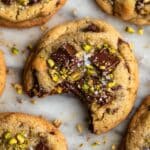 - Step 11: While cookies are cooling, sprinkle extra chopped chocolate, chopped pistachios, and flaky sea salt on top. Transfer to a wire rack to cool completely.