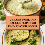 This creamy and flavorful Poblano Cream Sauce combines roasted poblano peppers with a rich blend of butter, flour, chicken broth, and sour cream. Perfect as a sauce for meats, vegetables, or enchiladas, this sauce delivers a smoky, slightly spicy, and luscious texture that elevates any dish.
