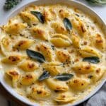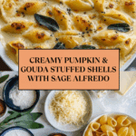 Delight in this comforting and elegant Pumpkin & Gouda Stuffed Shells recipe, featuring tender jumbo pasta shells filled with a creamy blend of pumpkin puree, smoked gouda, and ricotta cheese. Topped with a rich brown butter and sage Alfredo sauce, this baked dish offers a perfect balance of savory and sweet flavors ideal for fall or any cozy night in.
