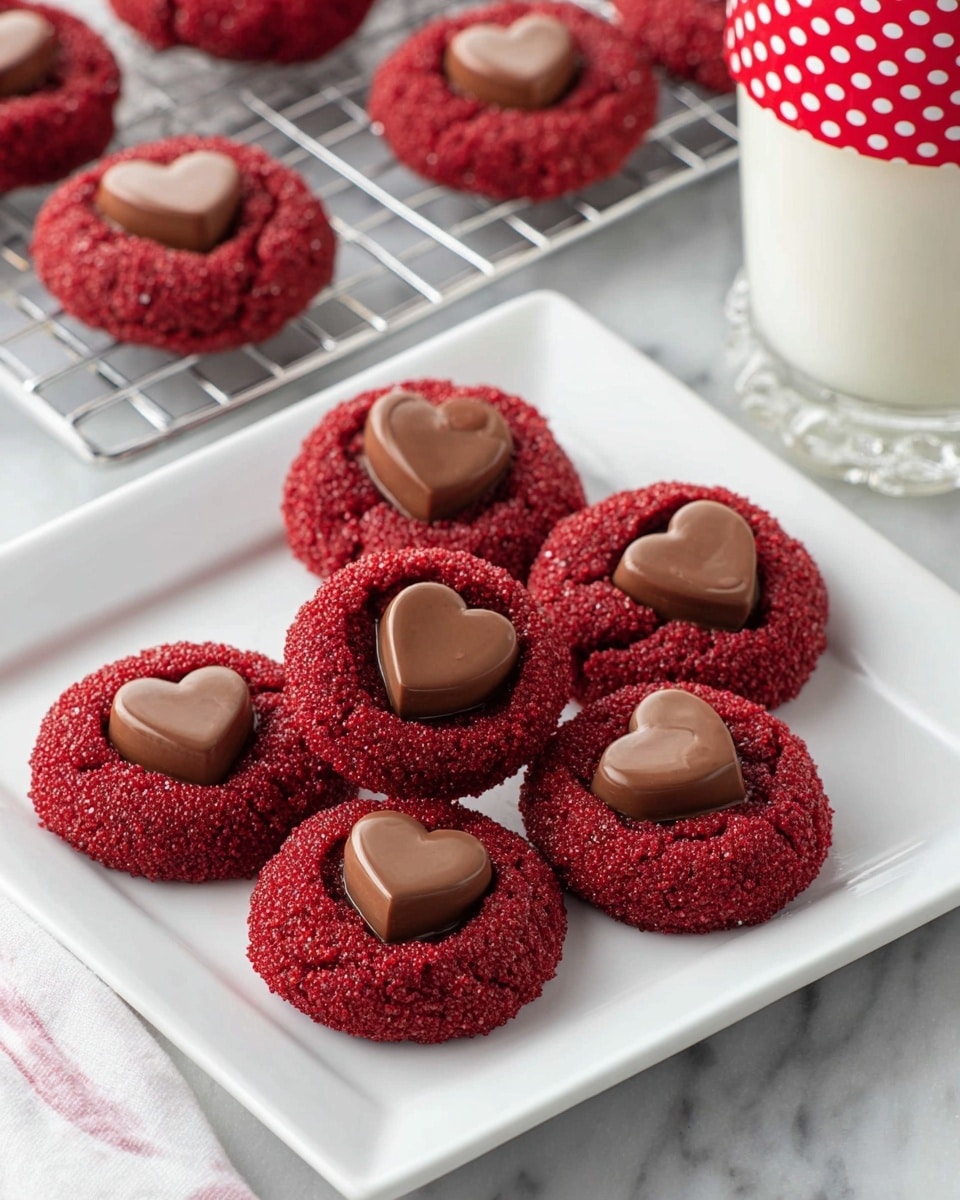 Red Velvet Blossom Cookies are a delightful treat combining classic red velvet flavors with a smooth chocolate center. These soft, colorful cookies topped with Dove Chocolate Hearts are perfect for any occasion, especially holidays or special celebrations.