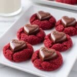 Delightfully festive Red Velvet Blossom Cookies feature a tender red velvet dough rolled in colorful sprinkles and topped with a frozen Dove Chocolate Heart. These cookies are soft, chocolaty, and perfect for Valentine’s Day or any special occasion where a sweet, charming treat is needed.