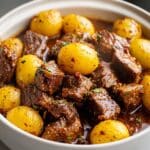 This Slow Cooker Garlic Butter Beef with Potatoes is a comforting and flavorful meal perfect for busy days. Tender beef chunks simmer with baby potatoes in a rich garlic butter sauce, creating a hearty dish that’s easy to prepare and sure to please the whole family.