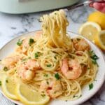 PrintSlow Cooker Garlic Shrimp Pasta Recipe