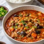 This Slow Cooker Korean Chicken Stew is a comforting and flavorful dish featuring tender boneless chicken thighs simmered with aromatic vegetables, mushrooms, and a rich, spicy sauce made with gochujang, soy sauce, and brown sugar. Perfect for an easy, hands-off meal, it combines the deep flavors of Korean cuisine with the convenience of slow cooking.