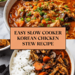 This Slow Cooker Korean Chicken Stew is a comforting, flavorful dish perfect for busy days. Tender chicken thighs simmer with vegetables and a rich, spicy gochujang sauce, making a hearty meal with minimal effort.