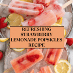 Refreshing and fruity strawberry lemonade popsicles perfect for hot days. These homemade treats combine juicy strawberries and tangy lemonade to create a delightful frozen dessert with a burst of natural flavors and a touch of sweetness.
