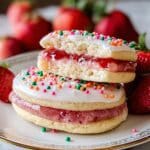 These Strawberry Pop Tart Sugar Cookies are a delightful twist on a classic treat, featuring a buttery sugar cookie dough filled with sweet strawberry jam. The cookies are soft yet slightly crisp around the edges, with a charming homemade look topped with colorful sprinkles or a drizzle of icing for an extra touch of sweetness. Perfect for a fun dessert or a nostalgic snack inspired by everyone’s favorite pop tarts.