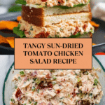 Keywords: Sun-Dried Tomato Chicken Salad, chicken salad recipe, creamy chicken salad, healthy chicken salad, Greek yogurt chicken salad