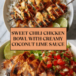 This Sweet Chili Chicken Bowl with Coconut Lime Drizzle is a perfect balance of spicy, tangy, and creamy flavors. Tender chicken thighs marinated in sweet chili sauce are paired with fluffy jasmine rice and a zesty coconut lime sauce that brings everything together beautifully. It’s a simple, satisfying meal ideal for any weeknight dinner.