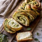 This Swirled Garlic Herb and Cheese Bread is a perfect homemade yeast bread with layers of melted mozzarella, parmesan, and fresh herbs swirled into soft, buttery dough. It’s ideal for garlic lovers and makes a delicious accompaniment to any meal or a savory snack on its own.