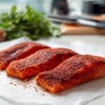 - Coat Salmon: Place the salmon fillets on the prepared baking sheet. Brush all sides of each fillet generously with the spice mixture, ensuring even coverage to infuse flavor.
