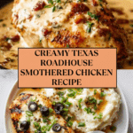 Texas Roadhouse Smothered Chicken with Jack Cheese is a comforting and flavorful dish featuring tender chicken breasts soaked in a rich, creamy sauce. Topped with melted jack cheese, it’s perfect for a satisfying dinner any night of the week.