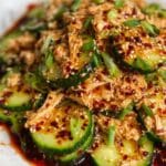 This Thai Cucumber Salad with Chicken is a vibrant, refreshing dish perfect for a light lunch or dinner. It features shredded chicken combined with crisp English cucumbers and green onions, all tossed in a creamy, tangy peanut sauce with layers of umami and a touch of heat from chili crisp. Topped with toasted sesame seeds and additional chili crisp for crunch and flavor, this salad brings together fresh ingredients with authentic Thai-inspired flavors in a simple, no-cook preparation.