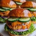 These Thai Sweet Chili Turkey Burgers offer a flavorful and healthy twist on classic burgers. Ground turkey is mixed with aromatic ingredients like fresh ginger, garlic, and green onions, then cooked to juicy perfection and glazed with a tangy, slightly sweet chili sauce. Served on toasted buns with fresh butter lettuce, shredded carrots, cucumber ribbons, and cilantro, these burgers are bursting with vibrant, fresh flavors inspired by Thai cuisine.