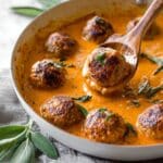 These Turkey Meatballs in Pumpkin Sage Sauce combine lean ground turkey meatballs baked to perfection with a rich, creamy pumpkin and sage sauce. The savory flavors of fresh sage and the warmth of pumpkin make this an ideal comforting dish for fall or anytime you want a flavorful, healthy meal with a twist.