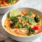 PrintVegan Thai Red Curry with Rice Vermicelli and Vegetables Recipe