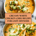 This White Chicken Chili is a comforting and flavorful twist on traditional chili, featuring tender chicken, creamy beans, and a mild blend of spices. It’s perfect for cozy dinners and easy to customize with your favorite toppings.